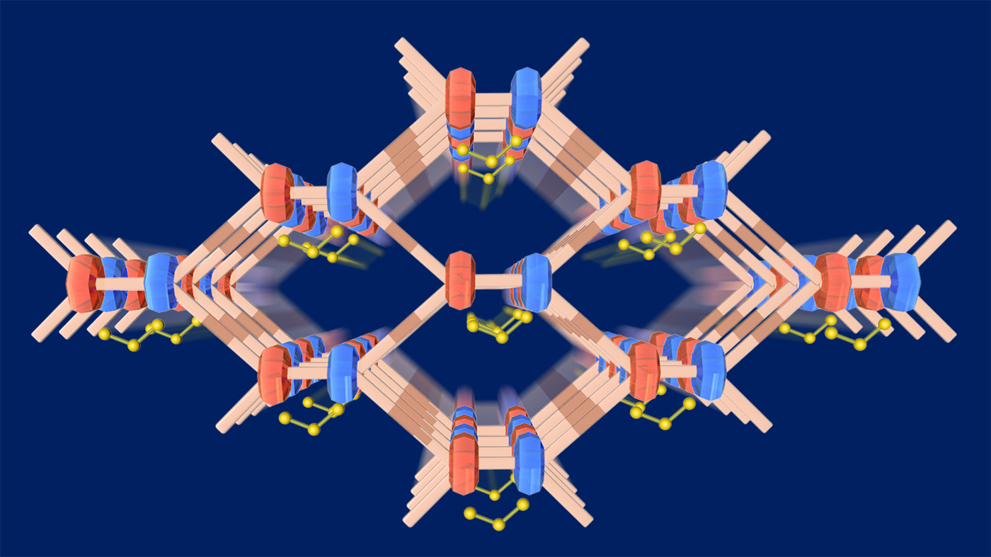 Kristalline Gerüststrukturen aus organischen Polymeren (covalent organic frameworks, COF) sind eine interessante Materialklasse. Sie zeichnen sich durch ihre hohe Porosität aus, vergleichbar mit einem Schwamm, allerdings sind in diesem Fall die Poren höchstens wenige Mikrometer groß. Manche dieser COF-Materialien besitzen besondere Eigenschaften, die sich für Anwendungen in elektrochemischen Energiespeichern anbieten, zum Beispiel eignen sich bestimmte Strukturen als „Wirte“ für Schwefelverbindungen wie Polysulfide in den Elektroden von Lithium-Schwefel-Batterien. Die Idee ist, dass sich die Polysulfide an die Innenflächen der Poren binden und dort wieder elementaren Schwefel erzeugen. Bislang hat dies jedoch noch nicht richtig funktioniert.